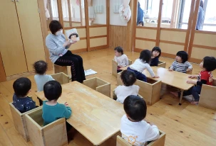 手あそびをしたり絵本を読んだり