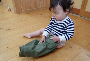 がんばって自分でお着替え。