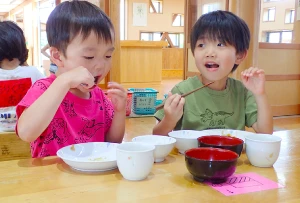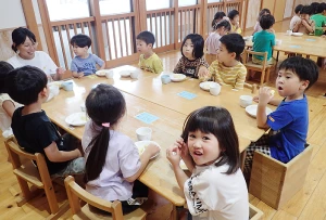 年長さんは給食の準備も
