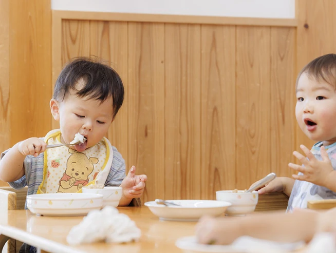 小さいうちから自分で食べたいという意欲を大切に育みます。